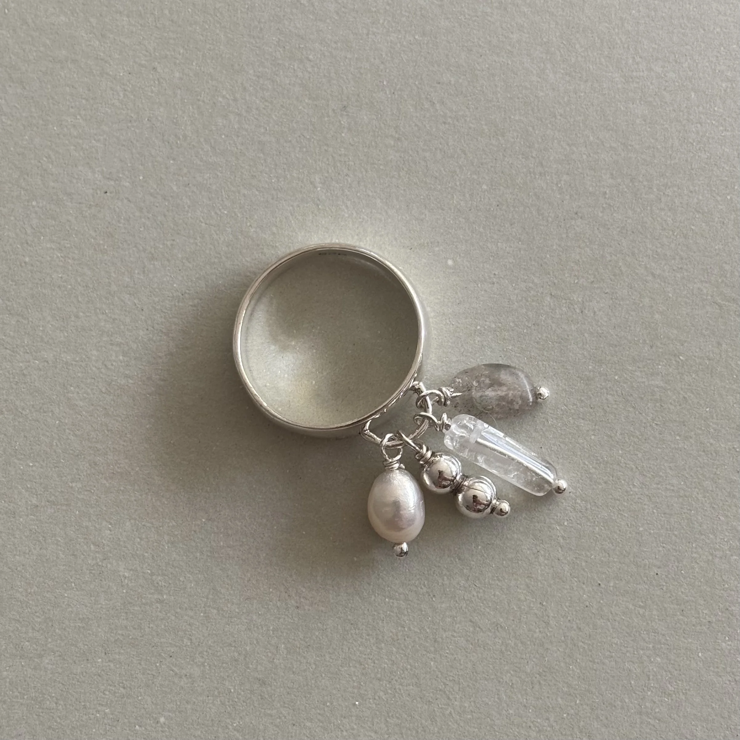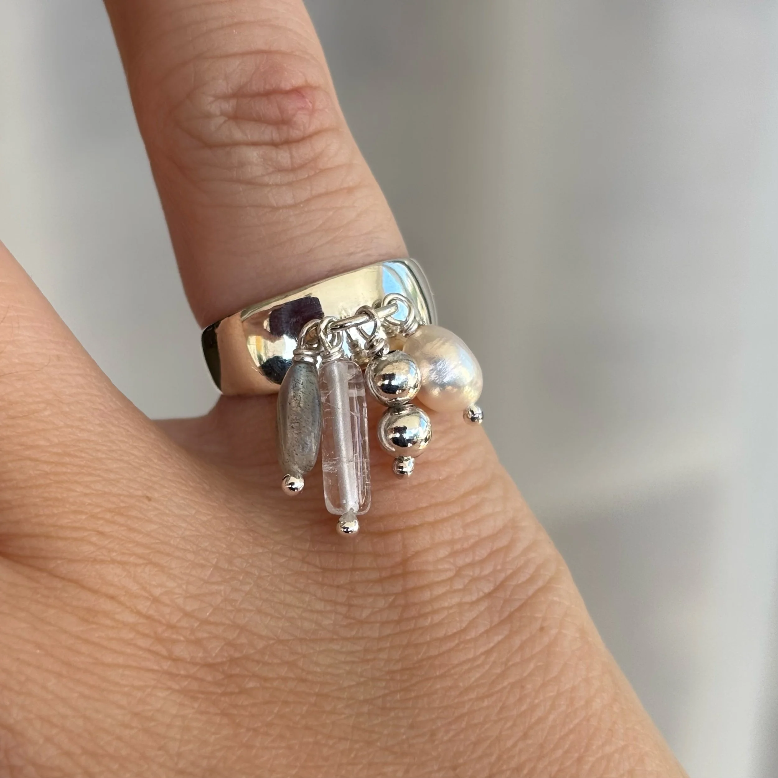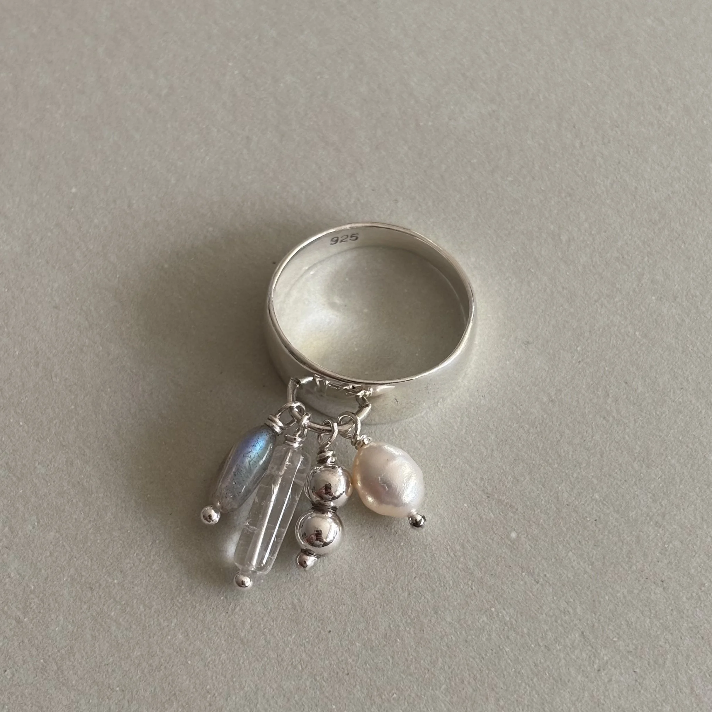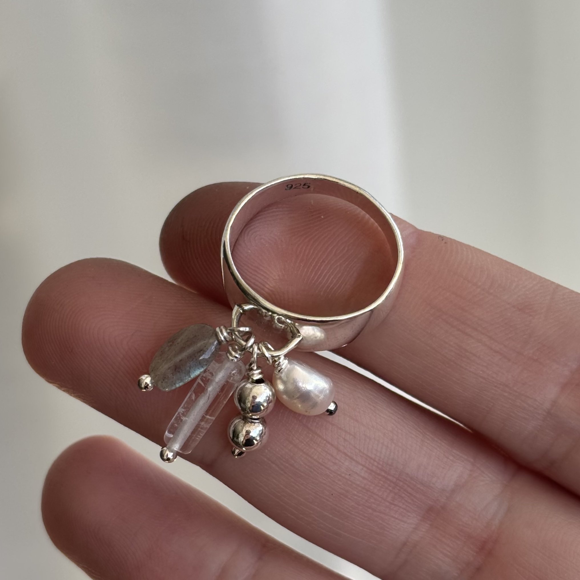 Image 1 of 4 Image 2 of 4 Image 3 of 4 Image 4 of 4 jeana ring $189.00 sold out 925 sterling silver with labradorite, quartz, silver + freshwater pearl beadssize 50 one of a kind Sold Out Added! 925 sterling silver with labradorite, quartz, silver + freshwater pearl beadssize 50 one of a kind