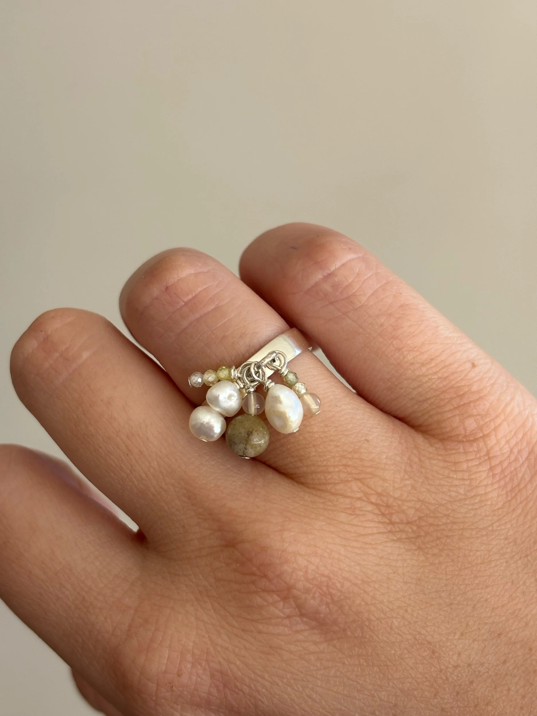 Image 1 of 2 Image 2 of 2 sorell ring $120.00 925 sterling silver ring featuring fresh water pearls, labradorite and crystal beadssize 55 one of one Add To Cart Added! 925 sterling silver ring featuring fresh water pearls, labradorite and crystal beadssize 55 one of one